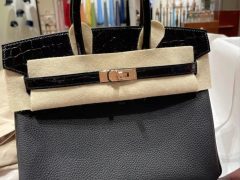Hermes Birkin 30cm BagEpsom掌纹牛皮 ck89黑色拼CK10奶昔白 拉丝金扣 全手缝