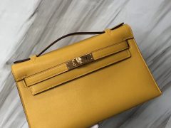 爱马仕mini Kelly一代 Hermès minikelly1代包 pochette 9D琥珀黄 Jaune Amber 御用原厂Swift calfskin 皮 全手缝 银扣 全手工蜜蜡线缝制