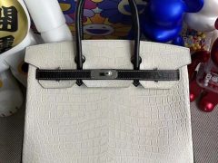 Hermes Birkin 30cm BagEpsom掌纹牛皮 ck89黑色拼CK10奶昔白 拉丝金扣 全手缝