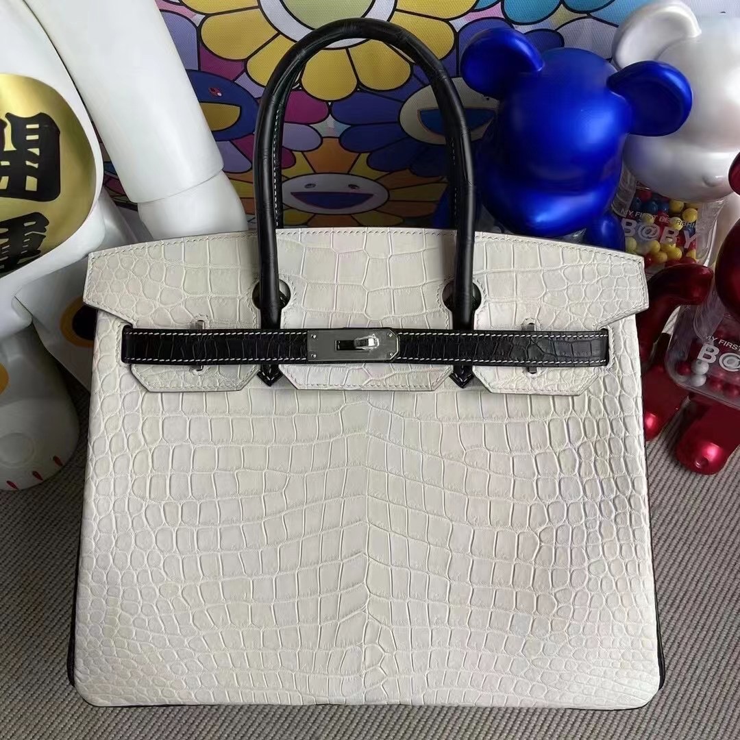 Hermes Birkin 30cm BagEpsom掌纹牛皮 ck89黑色拼CK10奶昔白 拉丝金扣 全手缝