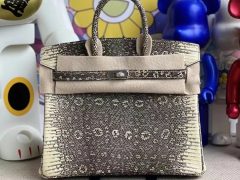爱马仕蜥蜴皮铂金包多少 Hermes Birkin 25cm Lizard 进口 蜥蜴皮 CK81 Gris Tourterelle 斑鸠灰 / 8F Etain 锡器灰 银扣 全手工蜜蜡线缝制 客定出