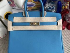 Hermes Birkin 25cm 7W Blue Izmir 伊兹密尔蓝 Shiny porosus crocodile