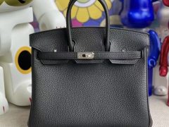 奢侈品 爱马仕铂金包 Hermes Birkin 25cm CC89 Noir 黑色 Togo 皮 全手工蜜蜡线缝制 Gold Hardware 金扣