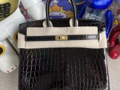Hermes Birkin 25cm 7W Blue Izmir 伊兹密尔蓝 Shiny porosus crocodile