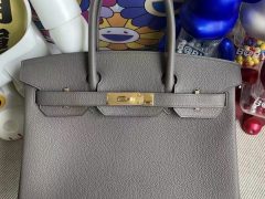 爱马仕铂金包包系列 Hermes Birkin 30cm Togo 8F 锡器灰 Etain 玫瑰金扣 Rose gold clasp 全手工蜜蜡线缝制