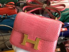 台湾台中市康斯坦斯包包 鳄鱼皮价格 Hermès Constance Bags 19cm CC31蜜糖棕 Miel 亮面方块 美洲鳄鱼 Shiny Alligator Crocodile in stock
