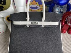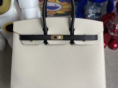 爱马仕铂金包包网站 Hermes Birkin 25cm Epsom Sellier 外缝 89 Noir 黑色/76 Bleu Indigo 内拼 0F Bleu frida 弗里达蓝 全手工缝制 金扣