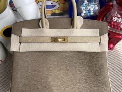 Hermes Birkin 25cm Handbag 7R azur 雾霾蓝 银扣 御用原厂 Epsom 牛皮 全手工蜜蜡线缝 客定出