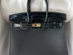Hermes Birkin 25cm 7W Blue Izmir 伊兹密尔蓝 Shiny porosus crocodile