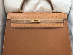 Hermes Kelly 25cm bag Epsom/鸵鸟/鳄鱼3拼 原厂南非kk 鸵鸟皮Ostrich 蜡线全手工缝制 进口辅料五金。