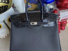 Hermes Birkin 25cm 7W Blue Izmir 伊兹密尔蓝 Shiny porosus crocodile