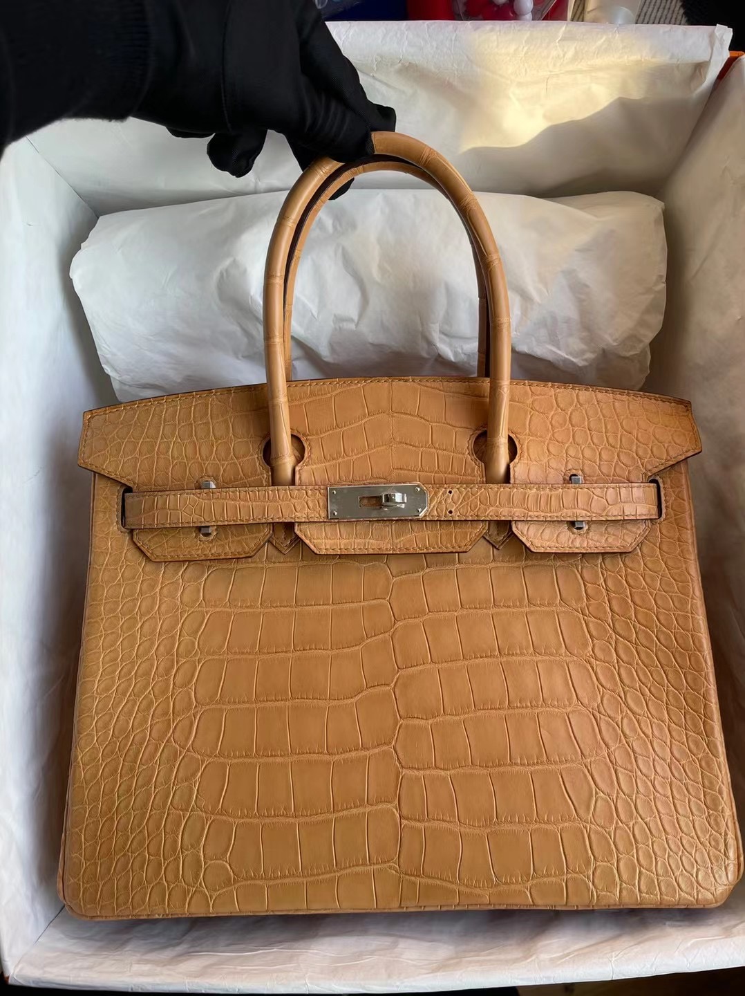 新加坡 Singapore 爱马仕 Hermes Birkin 30cm 雾面美洲鳄鱼 麦穗色 Matte Alligator Crocodile Phw 银扣 接受订制
