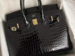 Hermes Birkin 25cm 7W Blue Izmir 伊兹密尔蓝 Shiny porosus crocodile