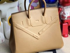 爱马仕铂金包多少钱一个 Hermes Birkin 25cm HSS Togo 37 Gold 金棕色/10 Craie 奶昔白 金扣 全手工蜜蜡线缝制 客户定制出