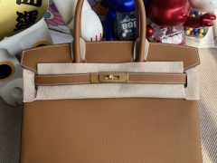 爱马仕铂金包的尺寸 Hermes Birkin 25cm Touch Togo 4B Biscuit 饼干色/亮面尼罗沙米色 金扣 全手工蜜蜡线缝制 客定出