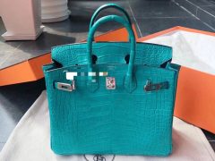Hermes Birkin 25cm 7W Blue Izmir 伊兹密尔蓝 Shiny porosus crocodile