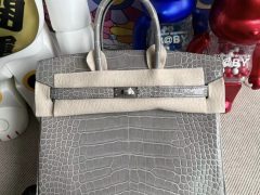 爱马仕官方旗舰店官网包包 Hermes Birkin 25cm 8L Beton 冰川白 雾面美洲鳄鱼 Matte Alligator Crocodile 金扣 GHW 全手工蜜蜡线缝制 客定出