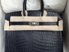 Hermes Birkin 25cm 7W Blue Izmir 伊兹密尔蓝 Shiny porosus crocodile