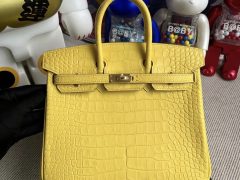 Indonesia Hermes Birkin 25cm 9D Jaune Amber Shiny porosus crocodile