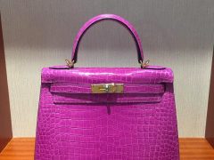 爱马仕凯莉包Hermes Kelly 25cm 亮面倒V鳄鱼皮革 Shiny porosus crocodile CC31蜜糖棕色 金银扣金属 全手工蜡线缝制。