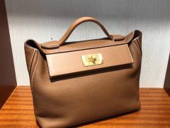 爱马仕2018走秀新款凯莉包2424 Hermes kelly 24/24包包 S2风衣灰 29cm