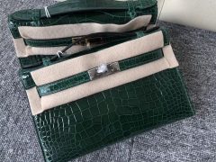 MiniKelly pochette 22cm E5桃红色 Rose Tyrien 亮面方块 美洲鳄鱼 Shiny alligator crocodile