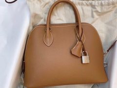 Bolide手提包外观轮廓很富有女性特征,间洁而令人印象深刻,单色包包上爱马仕标志性银色琐扣脱颖而出,魅力十足。