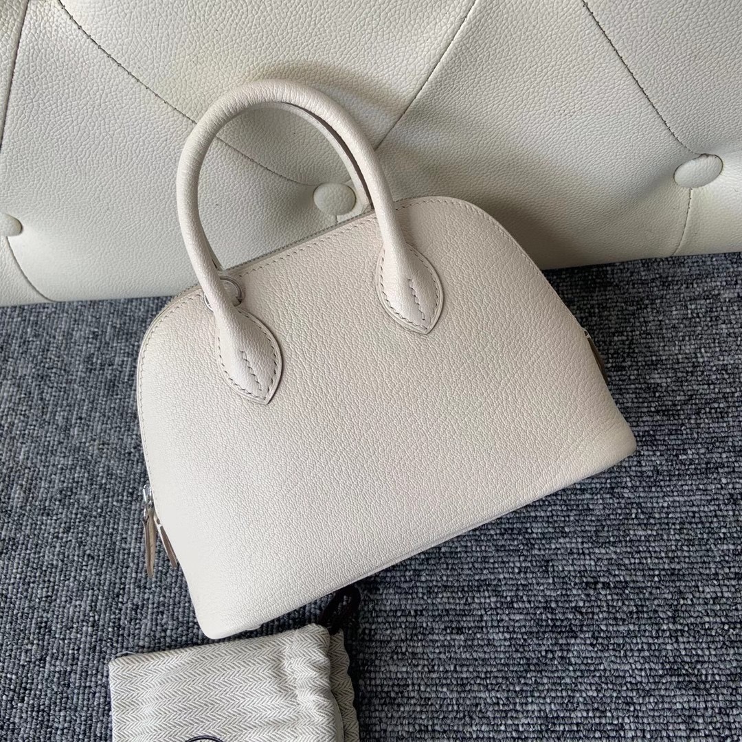 爱马仕2020年新刻印 Y刻 工匠号 香港 澳门 台湾 爱马仕专卖店四季酒店 Hermes Mini Bolide Chevre 山羊皮 CK10 Craie 奶昔白 银扣
