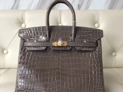 Hermes Birkin 25 Bag CK18大象灰Etoupe亮面两点 尼罗鳄鱼 HCP鳄鱼皮 金扣