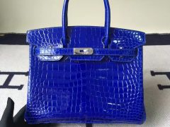 爱马仕包包图片价格 Hermes Birkin铂金包 1P鸭子蓝 Blue Colvert 30cm 原厂御用HCP 亮面倒V 澳洲湾鳄 Shiny porosus crocodile 金扣 全手工蜜蜡线缝制