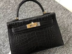 爱马仕 Kelly mini 2代 澳门价格多少 Macao Hermes Kelly mini 二代 CK61 Vert Olive 橄榄绿 雾面方块美洲鳄鱼 Matte alligator crocodile 银扣 in stock