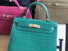 爱马仕新到皮革 Hermes W0 Vert Bosphore 博斯普鲁斯绿 亮面尼罗鳄鱼