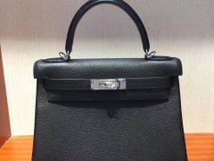 爱马仕凯莉包Hermes kelly 25cm Epsom CK89黑色 金银扣金属 蜡线全手工缝制 进口辅料五金。