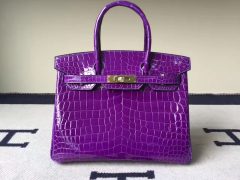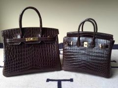爱马仕铂金鳄鱼皮 Hermes Birkin 25cm Bag E5桃红 亮面两点鳄鱼 Shiny nilo crocodile 全手工腊线缝 金扣