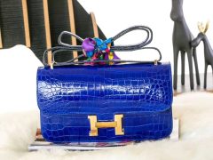 Hermes 尼罗鳄鱼 Shiny Nilo Crocodile 7W Blue Izmir 伊兹密尔蓝