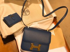 Hermes Constance 19cm 新颜色 M3墨水蓝 Blue Encre 亮面方块 美洲鳄鱼
