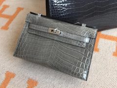 Dhabi Hermes MiniKelly 二代 Matte Alligator Crocodile 8L Beton 奶油白