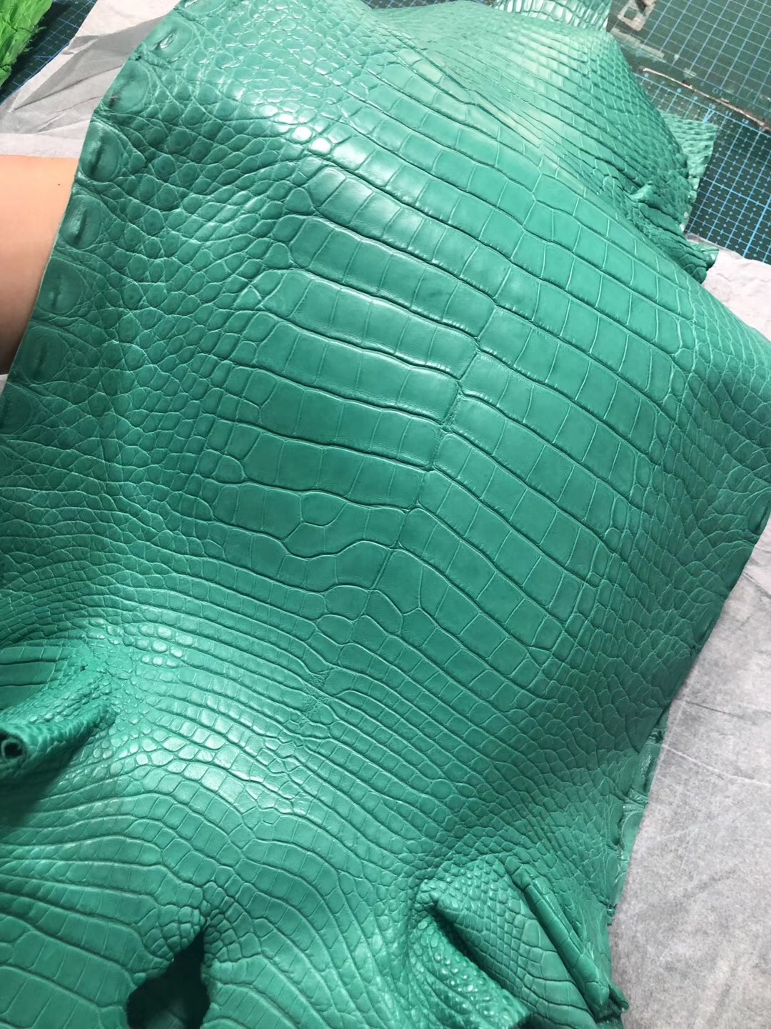爱马仕皮料大全 Hermes Birkin Kelly O6帝王绿 雾面方块 美洲鳄鱼 Matte alligator crocodile 皮料