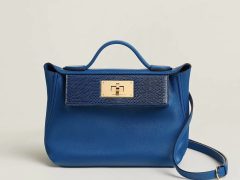 爱马仕2018最新款凯莉包Hermes Kelly 2424 Bag B3坦桑尼亚蓝Maurice拼Swift银扣
