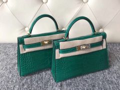 Dhabi Hermes MiniKelly 二代 Matte Alligator Crocodile 8L Beton 奶油白
