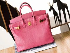 Hermes Brikin 25 Bag lizard 蜥蜴皮 I5火烈鸟粉手工蜡线缝制金扣