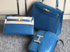 Hermes Constance 19cm 新颜色 M3墨水蓝 Blue Encre 亮面方块 美洲鳄鱼