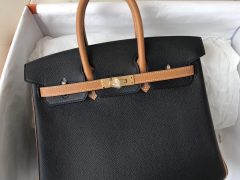 Malaysia Hermes Birkin Bags 25 CK89黑色/1H太妃糖双拼色 Epsom皮