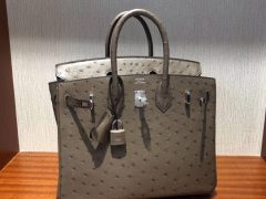 爱马仕鸵鸟皮铂金包图片 Hermes Birkin 30 Ostrich kk鸵鸟皮 CK18大象灰 银扣