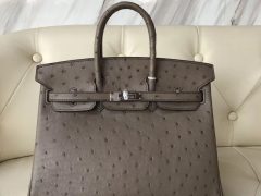 爱马仕鸵鸟皮铂金包 Hermes Birkin Bag 25 Ostrich KK 南非鸵鸟皮 CK18大象灰 银扣