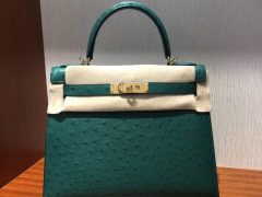 爱马仕Hermes Kelly 32cm Ostrich 原厂KK 鸵鸟皮 7k宝石蓝 全手工蜡线缝 银扣