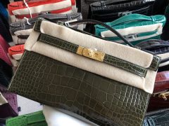 爱马仕鳄鱼包包价格及图片 爱马仕包包香港官网 HK HERMES MiniKelly Pochette 22cm 亮面方块 美洲鳄鱼 Shiny Alligator Crocodile 全手工蜜蜡线缝 in stock 现货