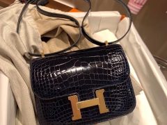 Hermes Constance 19cm 新颜色 M3墨水蓝 Blue Encre 亮面方块 美洲鳄鱼
