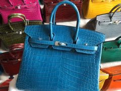 Hermes Birkin 25cm 7W Blue Izmir 伊兹密尔蓝 Shiny porosus crocodile