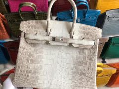 爱马仕鳄鱼皮铂金包香港新界价格及图片 Hong Kong Hermes Birkin 25cm CK81 斑鸠灰 Gris Tourterelle 亮面两点 尼罗鳄鱼 Shiny Nilo Crocodile 御用原装 HCP鳄鱼皮 全手工蜜蜡线缝